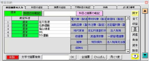 ●科目や摘要の入力は、摘要ボックスを出して、ポンポンと貼り付けるだけ |