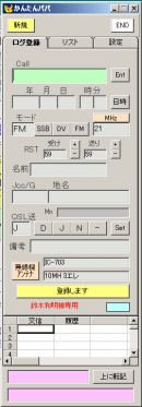 ●かんたん この機能はログ登録のみを 簡単に入力するツールです. 特に説明はなくても画面を 見て、試してみれば納得できる と思います. 普段画面の隅に実行させて置き 必要な時に入力する事を想定して みました. この機能を使う場合、地図の出る 画面で環境設定を一度する必要が 有ります. |
